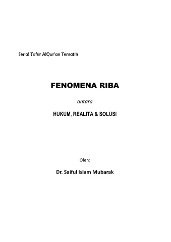 Serial Tafsir AlQur’an Tematik FENOMENA RIBA antara HUKUM, REALITA & SOLUSI Oleh: Dr. Saiful Islam Mubarak