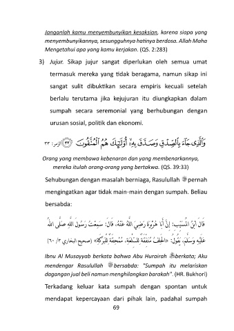 3) Jujur. Sikap jujur sangat diperlukan oleh semua umat