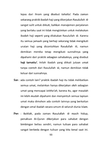 lepas dari ihram yang disebut tahallul. Pada zaman