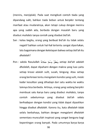 San : kalau begitu, orang yang berbuat bid’ah itu tidak selalu