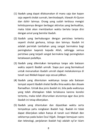 (1) Ibadah yang dapat dilaksanakan di mana saja dan kapan
