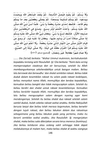 beliau berdiri dan shalat untuk rakaat kesembilannya. Kemudian