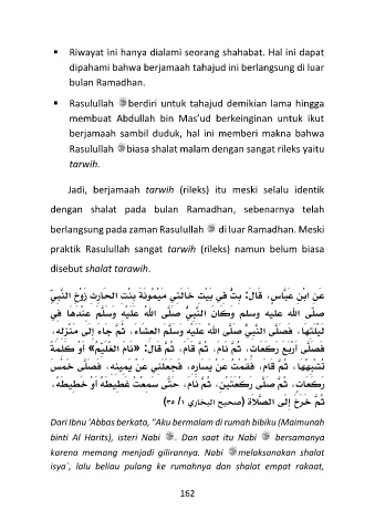 Dari Ibnu 'Abbas berkata, "Aku bermalam di rumah bibiku (Maimunah