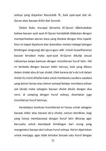 aslinya yang diajarkan Rasulullah , baik ayat-ayat dari Al-