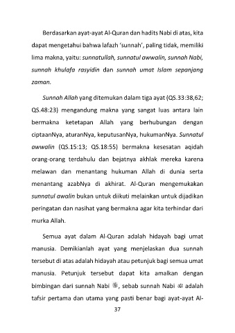 lima makna, yaitu: sunnatullah, sunnatul awwalin, sunnah Nabi,