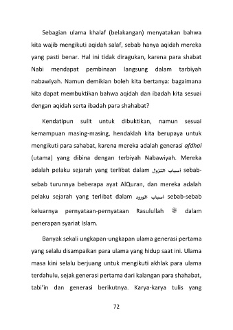 mengikuti para sahabat, karena mereka adalah generasi afdhal