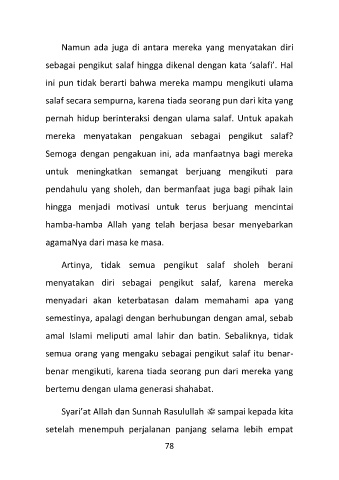 salaf secara sempurna, karena tiada seorang pun dari kita yang