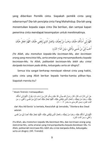 (Ya Allah, aku memohon kepada-Mu kecintaan-Mu, dan kecintaan orang yang