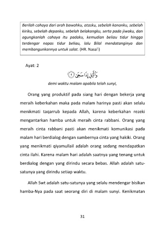 cinta ilahi. Karena malam hari adalah saatnya yang tenang untuk