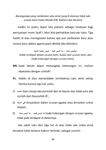 Ps. Hadits di atas menjelaskan tertolaknya satu amal setiap