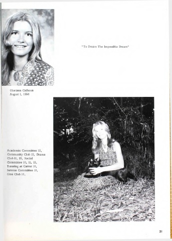 Gloriana Calhoun August 1, 1954 A c a d e m ic C om m ittee 12, Com m unity Club 12, Drama Club 11, 12, S ocial C om m ittee 10, 11, 12, Tu toring at Carver 10, S ervice C om m ittee 10, G lee Club 10.