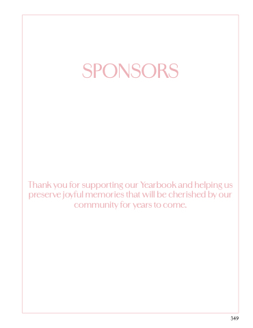 SPONSORS Thank you for supporting our Yearbook and helping us preserve joyful memories that will be cherished by our community for years to come. 349