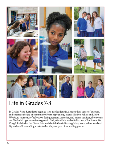 In Grades 7 and 8, students begin to step into leadership, deepen their sense of purpose, In Grades 7 and 8, students begin to step into leadership, deepen their sense of purpose,