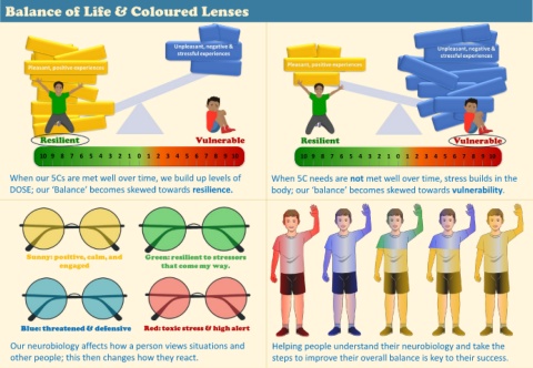 When our 5Cs are met well over time, we build up levels of                  When 5C needs are not met well over time, stress builds in the
