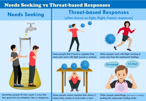 Sometimes people fill their needs in ways that         Some people cannot regulate their stress; it      Other people camouflage, (also known as ‘masking’),