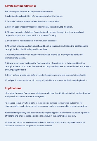 disadvantaged students, reduced exclusions, and a more equitable education system.
