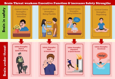 Brain Threat weakens Executive Function & increases Safety Strengths Brain in safety Brain under threat
