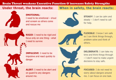Brain Threat weakens Executive Function & increases Safety Strengths