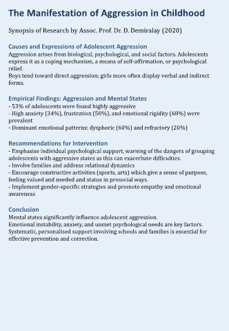 Synopsis of Research by Assoc. Prof. Dr. D. Demiralay (2020)