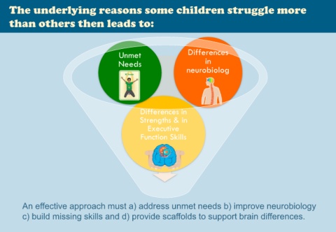 c) build missing skills and d) provide scaffolds to support brain differences.