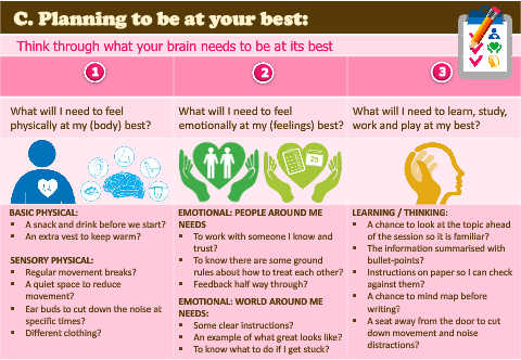 ▪ Regular movement breaks? rules about how to treat each other? ▪ Instructions on paper so I can check