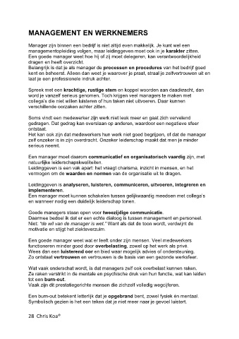 Een manager moet daarom communicatief en organisatorisch vaardig zijn, met