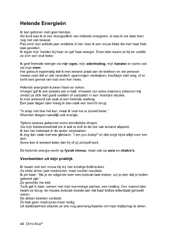 Ik geef helende energie via mijn ogen, mijn ademhaling, mijn handen en soms ook