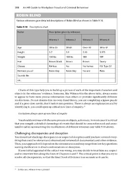 Various witnesses gave detailed descriptions of Robin Blind as shown in Table 9.10.