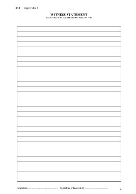 444 Appendix 3 WITNESS STATEMENT (CJ Act 1967, s9 MC Act 1980 s102; MC Rules 1981 r 70) Signature............................................... Signature witnessed by.................................... 2
