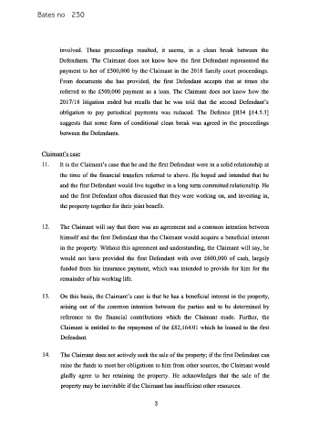 in the property. Without this agreement and understanding, the Claimant will say, he
