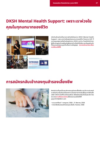Sawasdee Newsletter, Oct/Nov 2024 27 Sawasdee Newsletter, June 2025DKSH Mental Health Support: %u0e40%u0e1e%u0e23%u0e32%u0e30%u0e40%u0e23%u0e32%u0e2b%u0e48%u0e48%u0e27%u0e07%u0e43%u0e22%u0e04%u0e38%u0e13%u0e43%u0e19%u0e17%u0e38%u0e38%u0e01%u0e1a %u0e38%u0e17%u0e1a%u0e32%u0e17%u0e02%u0e2d%u0e07%u0e0a%u0e35%u0e27%u0e34%u0e35%u0e15%u0e34%u0e01%u0e32%u0e23%u0e2a%u0e21%u0e31%u0e31%u0e04%u0e23%u0e01%u0e25%u0e31%u0e31%u0e1a%u0e40%u0e02%u0e49%u0e49%u0e32%u0e01%u0e2d%u0e07%u0e17%u0e38%u0e38%u0e19%u0e2a%u0e33%u0e33%u0e23%u0e2d%u0e07%u0e40%u0e25%u0e35%u0e49%u0e49%ufffd%u0e22%u0e07%u0e0a%u0e35%u0e1e%u0e35%u0e40%u0e1b%u0e34%u0e34%u0e14%u0e15%u0e31%u0e31%u0e27%u0e41%u0e25%u0e49%u0e49%u0e27%u0e2d%u0e22%u0e48%u0e48%u0e32%u0e07%u0e40%u0e1b%u0e47%u0e47%u0e19%u0e17%u0e32%u0e07%u0e01%u0e32%u0e23%u0e2a%u0e33%u0e33%ufffd%u0e2b%u0e23%u0e31%u0e31%u0e1a%u0e42%u0e04%u0e23%u0e07%u0e01%u0e32%u0e23 DKSH Mental Health Support: %u0e40%u0e1e%u0e23%u0e32%u0e30%u0e40%u0e23%u0e32%u0e2b%u0e48%u0e48%u0e27%u0e07%u0e43%u0e22%u0e04%u0e38%u0e38%u0e13%u0e43%u0e19%u0e17%u0e38%u0e38%u0e01%u0e1a%u0e17%u0e1a%u0e32%u0e17%u0e02%u0e2d%u0e07%u0e0a%u0e35%u0e35%u0e27%u0e34%u0e34%u0e15 %u0e42%u0e04%u0e23%u0e07%u0e01%u0e32%u0e23 EAP %u0e17%u0e35%u0e48%u0e48%ufffd%u0e08%u0e30%u0e0a%u0e48%u0e48%u0e27%u0e22%u0e14%u0e39%u0e39%u0e41%u0e25%u0e2a%u0e38%u0e38%u0e02%u0e20%u0e32%u0e1e%u0e43%u0e08%u0e2a%u0e33%u0e33%ufffd%u0e2b%u0e23%u0e31%u0e31%u0e1a%u0e1e%u0e19%u0e31%u0e31%u0e01%u0e07%u0e32%u0e19 DKSH %u0e17%u0e38%u0e38%u0e01%u0e17%u0e48%u0e48%u0e32%u0e19 %u0e42%u0e14%u0e22%u0e21%u0e35%u0e35%u0e19%u0e31%u0e31%u0e01%u0e08%u0e34%u0e34%u0e15%u0e27%u0e34%u0e34%u0e17%u0e22%u0e32%u0e1c%u0e39%u0e49%u0e49%u0e40%u0e0a%u0e35%u0e48%u0e48%ufffd%u0e22%u0e27%u0e0a%u0e32%u0e0d%u0e17%u0e38%u0e38%u0e01%u0e17%u0e48%u0e48%u0e32%u0e19%u0e1e%u0e23%u0e49%u0e49%u0e2d%u0e21%u0e23%u0e31%u0e31%u0e1a%u0e1f%u0e31%u0e31%u0e07%u0e17%u0e38%u0e38%u0e01%u0e46%u0e17%u0e48%u0e48%u0e32%u0e19%u0e42%u0e14%u0e22%u0e44%u0e21%u0e48%u0e48%u0e15%u0e31%u0e31%u0e14%u0e2a%u0e34%u0e34%u0e19 %u0e41%u0e25%u0e30%u0e02%u0e49%u0e49%u0e2d%u0e21%u0e39%u0e39%u0e25%u0e2a%u0e48%u0e48%u0e27%u0e19%u0e15%u0e31%u0e31%u0e27%u0e17%u0e31%u0e49%u0e49%u0e07%u0e2b%u0e21%ufffd%u0e14%u0e02%u0e2d%u0e07%u0e04%u0e38%u0e38%u0e13%u0e08%u0e30%u0e16%u0e39%u0e39%u0e01%u0e40%u0e01%u0e47%u0e47%u0e1a%u0e40%u0e1b%u0e47%u0e47%u0e19%u0e04%u0e27%u0e32%u0e21%u0e25%u0e31%u0e31%u0e1a%u0e2a%u0e39%u0e39%u0e07%u0e2a%u0e38%u0e38%u0e14 %u0e2a%u0e32%u0e21%u0e32%u0e23%u0e16%u0e2d%u0e48%u0e48%u0e32%u0e19%u0e23%u0e32%u0e22%u0e25%u0e30%u0e40%u0e2d%u0e35%u0e35%u0e22%u0e14%u0e01%u0e32%u0e23%u0e43%u0e0a%u0e49%u0e49%u0e07%u0e32%u0e19%u0e44 %u0e0a%u0e49%u0e49 %u0e14%u0e49%u0e49%u0e17%u0e35%u0e48%u0e48%ufffd%u0e19%u0e35%u0e48%u0e48%ufffd %u0e2a%u0e33%u0e33%ufffd%u0e2b%u0e23%u0e31%u0e31%u0e1a%u0e17%u0e48%u0e48%u0e32%u0e19%u0e17%u0e35%u0e48%u0e48%ufffd%u0e40%u0e04%u0e22%u0e40%u0e1b%u0e47%u0e47%u0e19%u0e2a%u0e21%u0e32%u0e0a%u0e34%u0e34%u0e01%u0e01%u0e2d%u0e07%u0e17%u0e38%u0e38%u0e19%u0e2a%u0e33%u0e33%ufffd%u0e23%u0e2d%u0e07%u0e40%u0e25%u0e35%u0e49%u0e49%ufffd%u0e22%u0e07%u0e0a%u0e35%u0e35%u0e1e %u0e41%u0e25%u0e30%u0e21%u0e35%u0e35%u0e04%u0e27%u0e32%u0e21%u0e1b%u0e23%u0e30%u0e2a%u0e07%u0e04%u0e4c%u0e4c%u0e08%u0e30%u0e01%u0e25%u0e31%u0e31%u0e1a%u0e40%u0e02%u0e49%u0e49%u0e32%u0e21%u0e32%u0e40%u0e1b%u0e47%u0e47%u0e19%u0e2a%u0e48%u0e48%u0e27%u0e19%u0e2b%u0e19%u0e36%u0e48%u0e48%ufffd%u0e07%u0e02%u0e2d%u0e07%u0e04%u0e27%u0e32%u0e21%u0e21%u0e31%u0e48%u0e48%u0e19%u0e04%ufffd%u0e07%u0e17%u0e32%u0e07%u0e01%u0e32%u0e23%u0e40%u0e07%u0e34%u0e34%u0e19%u0e40%u0e1e%u0e37%u0e48%u0e48%ufffd%u0e2d%u0e2d%u0e19%u0e32%u0e04%u0e15%u0e2d%u0e35%u0e35%u0e01%u0e04%u0e23%u0e31%u0e49%u0e49%u0e07 %ufffd%u0e1a%u0e23%u0e34%u0e29%u0e31%u0e34 %u0e31%u0e17 DKSH %u0e22%u0e34%u0e34%u0e19%u0e14%u0e35%u0e35%u0e17%u0e35%u0e48%u0e48%ufffd%u0e08%u0e30%u0e41%u0e08%u0e49%u0e49%u0e07%u0e23%u0e2d%u0e1a%u0e1e%u0e34%u0e34%u0e40%u0e28%u0e29 %u0e40%u0e1e%u0e37%u0e48%u0e48%ufffd%u0e2d%u0e2a%u0e21%u0e31%u0e31%u0e04%u0e23%u0e01%u0e25%u0e31%u0e31%u0e1a%u0e40%u0e02%u0e49%u0e49%u0e32%u0e40%u0e1b%u0e47%u0e47%u0e19%u0e2a%u0e21%u0e32%u0e0a%u0e34%u0e01 %u0e42 %u0e34%u0e14%u0e22%u0e2a%u0e32%u0e21%u0e32%u0e23%u0e16%u0e14%u0e32%u0e27%u0e19%u0e4c%u0e4c%u0e42%u0e2b%u0e25%u0e14%u0e40%u0e2d%u0e01%u0e2a%u0e32%u0e23%u0e40%u0e1e%u0e37%u0e48%u0e48%ufffd%u0e2d%u0e01%u0e23%u0e2d%u0e01%u0e41%u0e25%u0e30%u0e2a%u0e48%u0e48%u0e07%u0e44%u0e1b%u0e44%u0e14%u0e49%u0e49%u0e17%u0e35%u0e48%u0e48%ufffdpayroll.th@dksh.com %u2022 %u0e23%u0e30%u0e22%u0e30%u0e40%u0e27%u0e25%u0e32%u0e15%u0e31%u0e49%u0e49%u0e07%u0e41%ufffd%u0e15%u0e48%u0e48 1 %u0e01%u0e23%u0e01%u0e0e%u0e32%u0e04%u0e21 2568 - 31 %u0e2a%u0e34%u0e34%u0e07%u0e2b%u0e32%u0e04%u0e21 2568 %u2022 %u0e01%u0e32%u0e23%u0e19%u0e33%u0e33%ufffd%u0e2a%u0e48%u0e48%u0e07%u0e40%u0e07%u0e34%u0e34%u0e19%u0e2a%u0e30%u0e2a%u0e21%u0e40%u0e02%u0e49%u0e32%u0e49%u0e01%u0e2d%u0e07%u0e17%u0e38%u0e19%u0e38%u0e08%u0e30%u0e40%u0e23%u0e34%u0e48%u0e48%u0e21%ufffd %u0e02%u0e36%u0e49%u0e49%ufffd%u0e19: %u0e01%u0e31%u0e31%u0e19%u0e22%u0e32%u0e22%u0e19 2568