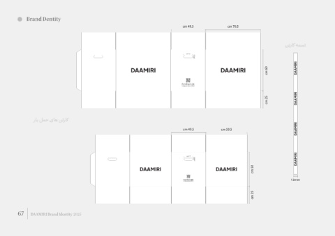 Brand Dentity cm 49.5 cm 79.5 ¼ cm 13 cm 3.5 cm 60 cm 25 ¼¸ cm 49.5 cm 59.5 cm 13 cm 3.5 cm 50 12mm cm 25 67 DAAMIRI Brand Identity 2025