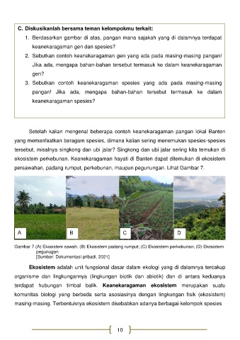 Gambar 7 (A) Ekosistem sawah; (B) Ekosistem padang rumput; (C) Ekosistem perkebunan; (D) Ekosistem