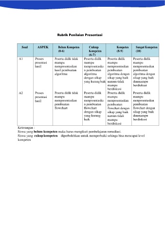 Soal ASPEK Belum Kompeten Cukup Kompeten Sangat Kompeten