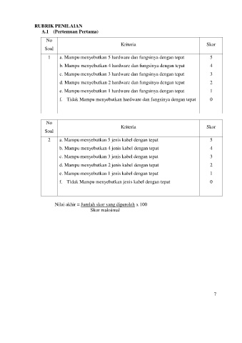 2 a. Mampu menyebutkan 5 jenis kabel dengan tepat 5