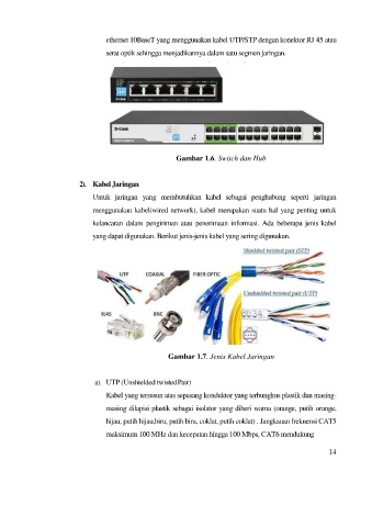 ethernet 10BaseT yang menggunakan kabel UTP/STP dengan konektor RJ 45 atau