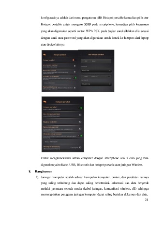 digunakan yaitu Kabel USB, Bluetooth dan hotspot portable atau jaringan Wireless.