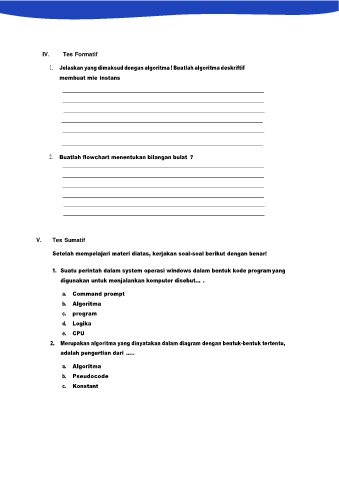 1. Jelaskan yang dimaksud dengan algoritma ! Buatlah algoritma deskriftif