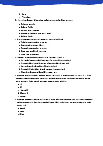 7. Diberikan algoritma : Apabila warna merah maka jadi hijau. Apabila warna hijau maka jadi putih,