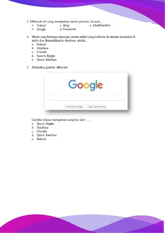 3. Dibawah ini yang merupakan mesin pencari, kecuali….