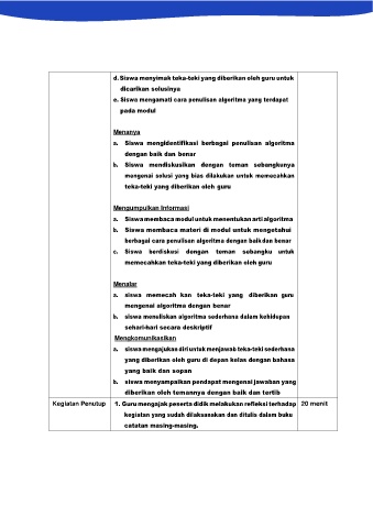 e. Siswa mengamati cara penulisan algoritma yang terdapat