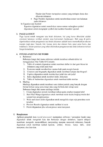 Header dan Footer merupakan catatan yang terdapat diatas dan