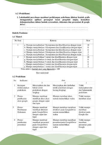 1 a. Mampu menyebutkan 5 komponen dan klasifikasinya dengan tepat 10