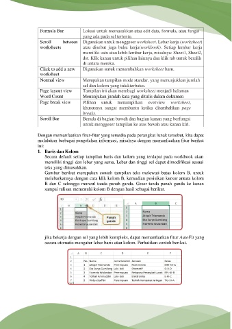 Scroll between Digunakan untuk menggeser worksheet. Lebar kerja (worksheet)