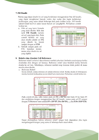 perhitungan yang sama dalam beberapa kali pada lembar kerja. Fill handle