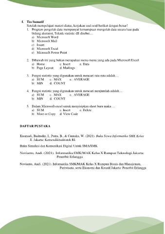 3. Fungsi statistic yang digunakan untuk mencari rata-rata adalah…