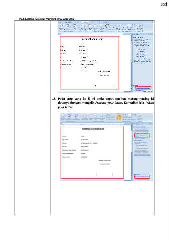 Modul Aplikasi Komputer Microsoft office word 2007 16. Pada step yang ke 5 ini anda dapat melihat masing–masing isi datanya dengan mengklik Preview your letter. Kemudian klik Write your letter.