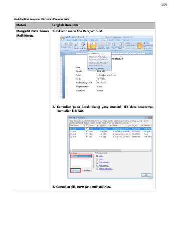 Mengedit Data Source 1. Klik icon menu Edit Recepient List.