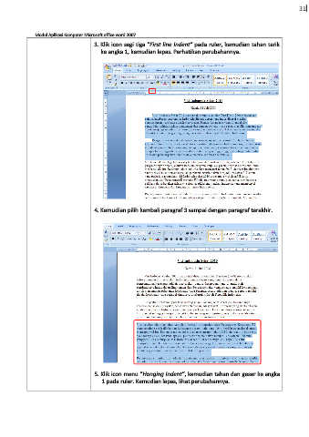 3. Klik icon segi tiga “First line Indent” pada ruler, kemudian tahan tarik