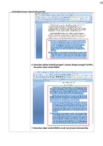 Modul Aplikasi Komputer Microsoft office word 2007 6. Kemudian seleksi kembali paragraf 1 sampai dengan paragraf terakhir, kemudian tekan tombol Ctrl+J. 7. Kemudian tekan tombol Ctrl+S, untuk menyimpan dokumen kita.